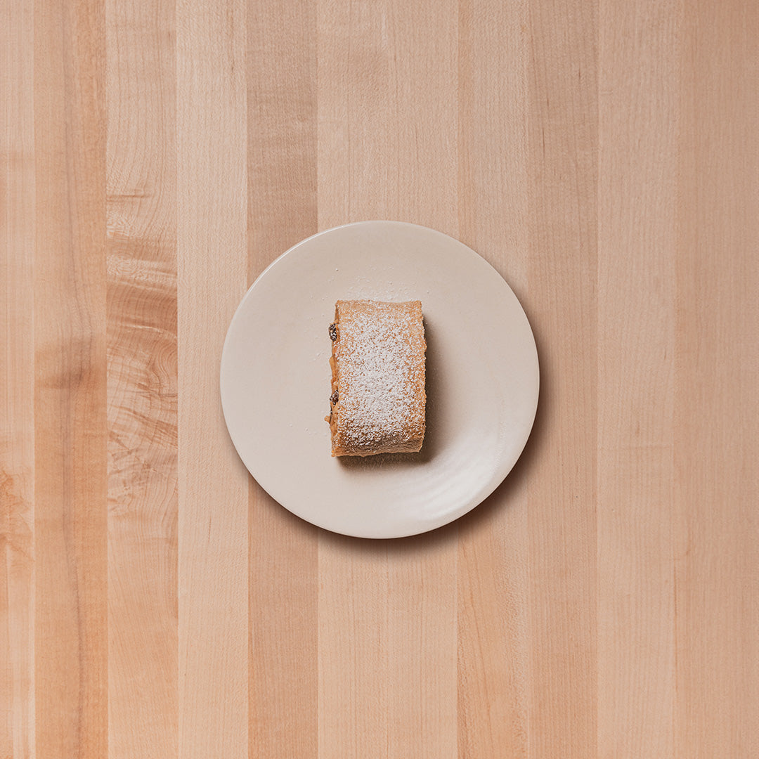 Esta tradicional receta de la pastelería austriaca se distingue por su fina masa estirada a mano. Su fragante interior de manzanas cocinadas a fuego lento en especias es una herencia de la cultura bizantina, y existen manuscritos de esta preparación que datan de 1696. Para elaborar nuestra versión utilizamos pan de masa madre, manzanas orgánicas, canela y un toque de run austriaco.